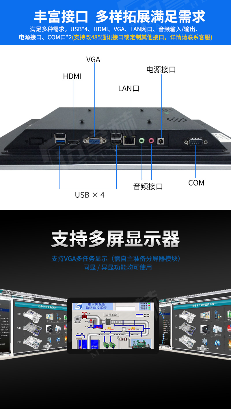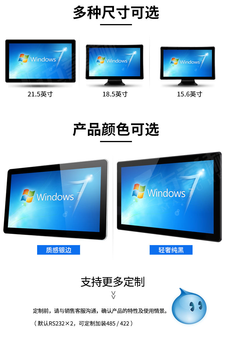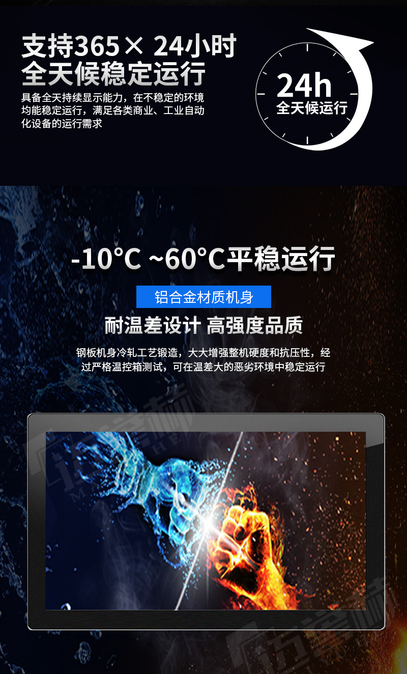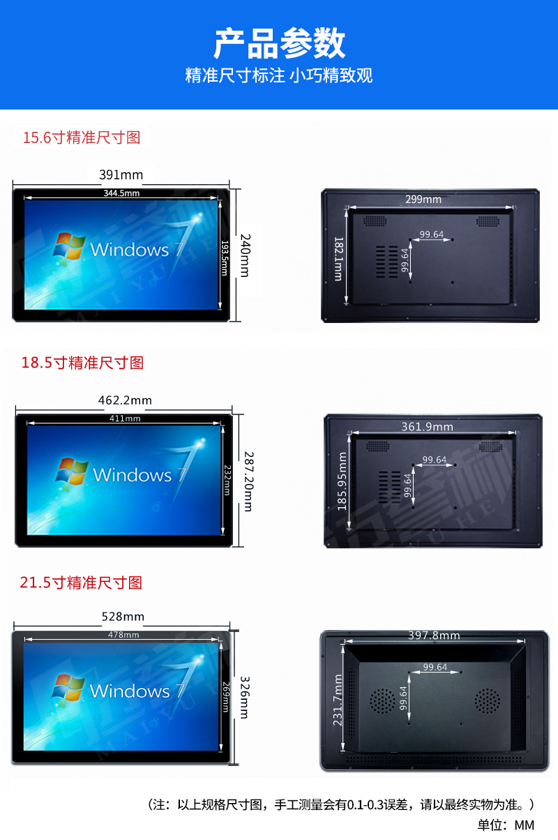 邁譽(yù)赫超薄高清工控觸摸屏一體機(jī),支持1920*1080分辨率,尺寸有13.3寸、15.6寸、18.5寸、21.5寸、23.6寸、27寸等,配置涵蓋X86和安卓。